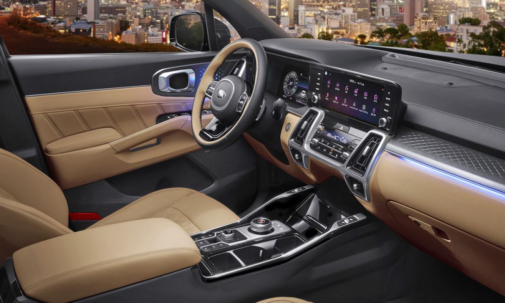 As we saw with the aforementioned teaser sketches, the new Sorento’s cabin is dominated by a dual-screen arrangement similar in configuration to Mercedes-Benz’s widescreen cockpit offering. The new Sorento also ditches the traditional gearlever in favour of a dial, as employed by certain Jaguar Land Rover products.