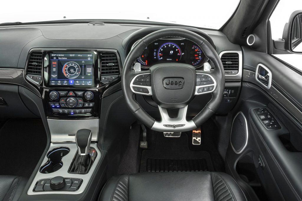 Jeep Grand Cherokee Trackhawk is not only a mouthful of American jargon, it’s one ridiculous SUV that is effectively a dragster for the family man who has kids and a dog.